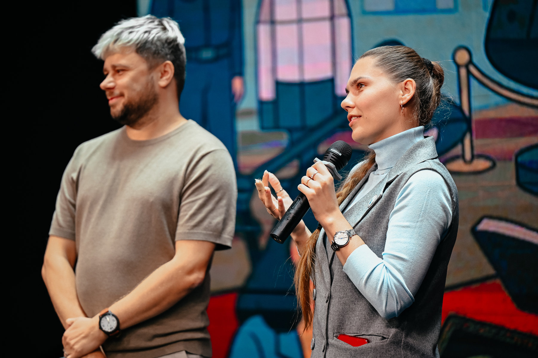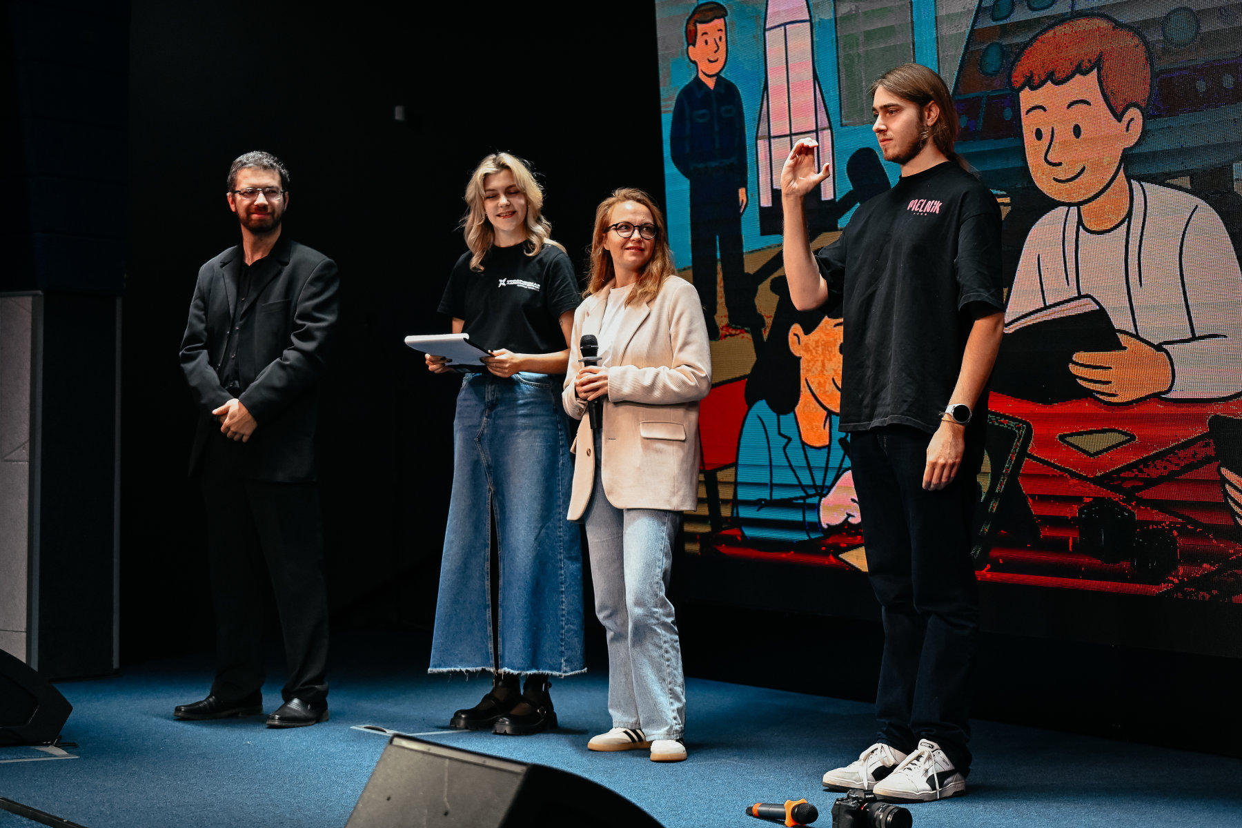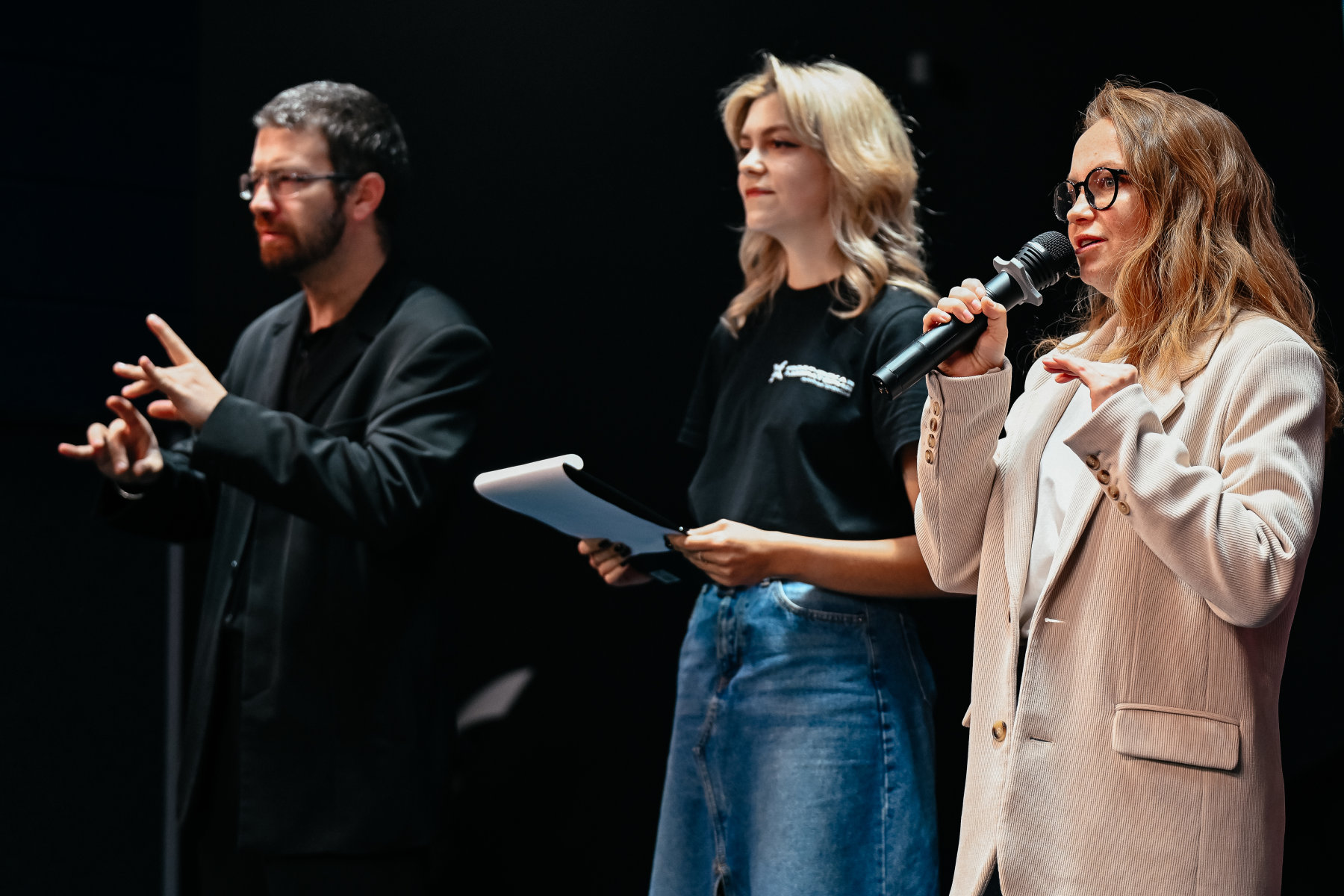 Своим опытом и знаниями с ребятами делились лучшие эксперты. На сцене конференц-зала выступили специалист по SMM Екатерина Малиновская, видеограф Григорий Лесник, преподаватель русского жестового языка Юлия Морозова и педагог по актёрскому мастерству, художественный руководитель Калужского театра кукол Алексей Алешко. Преподаватели поблагодарили ребят за интересный творческий подход к обучению, за старания и инициативу, за взаимопомощь и командную работу.