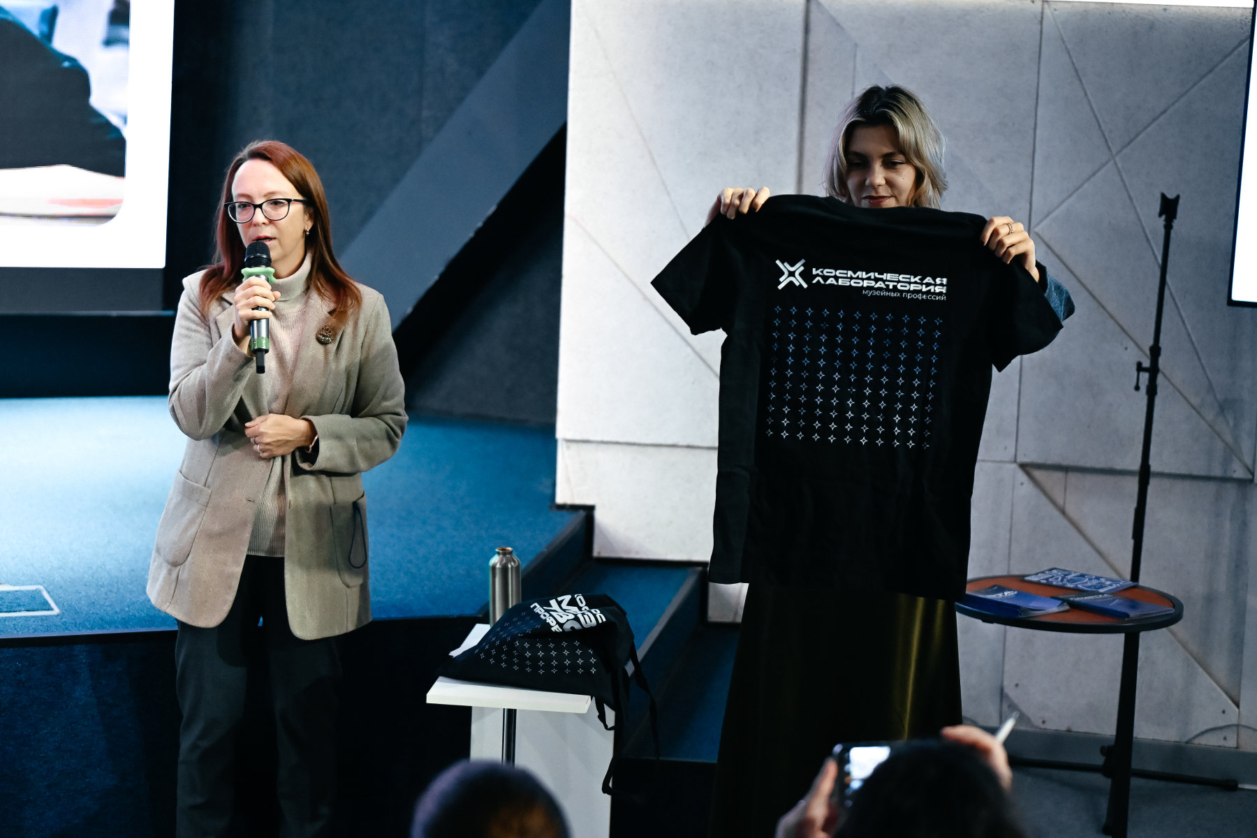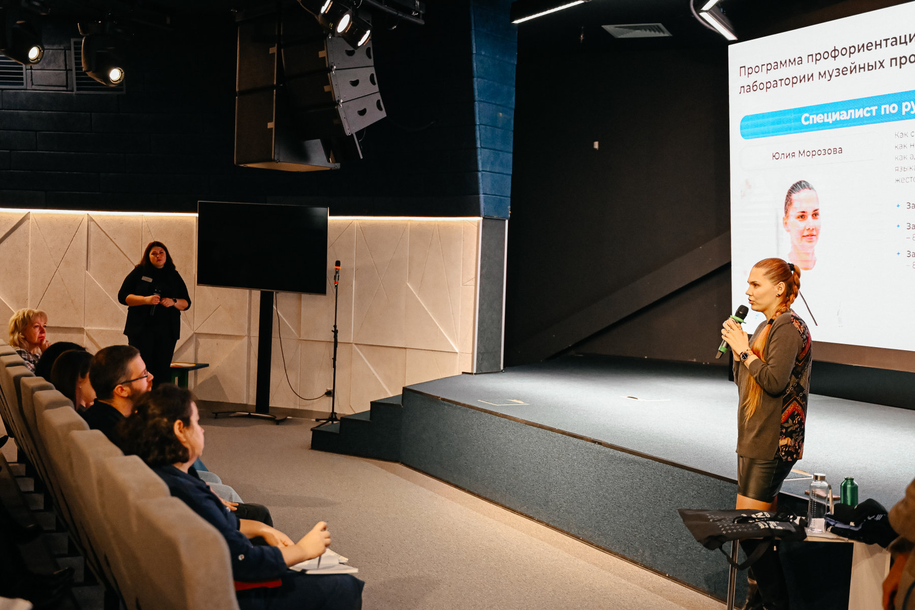 Представитель команды проекта Алина Соленкова рассказала участникам встречи о том, что программа Лаборатории состояла из двух блоков. Первый блок включал знакомство с музеем истории космонавтики и его коллекцией. В течение недели подростки знакомились с разделами теоретической и практической космонавтики, со значимыми экспонатами музея, знания о которых позволили им выполнить итоговую работу. Во втором блоке ребята получили представление о таких музейных профессиях, как экскурсовод, дизайнер, фотограф/видеограф, специалист SMM. Кроме музейных специальностей, ребята познакомились с основами актерского мастерства, чтобы уверенно выглядеть в кадре.