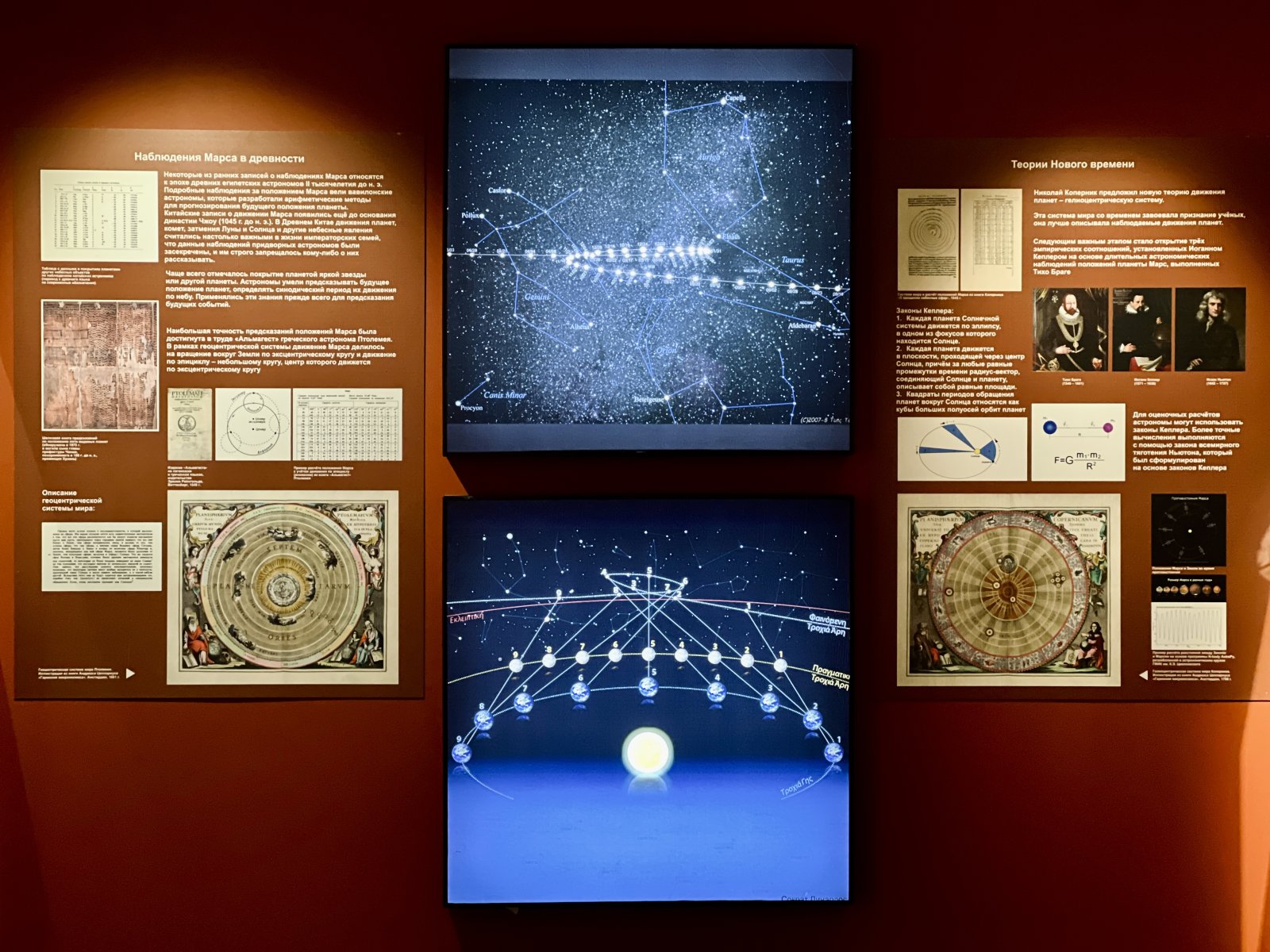 Современный этап исследований Марса представлен широким обзором советских и зарубежных миссий к планете. Любители астрономии найдут на выставке мини-копии марсоходов, которые работали в прошлом и продолжают сейчас бороздить бескрайние просторы марсианских пустынь.