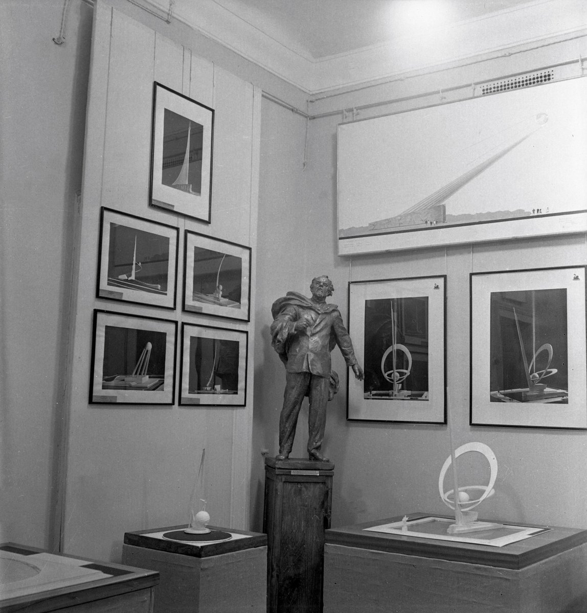Фрагмент художественной выставки. Скульптурный портрет К.Э. Циолковского работы А.П. Файдыш-Крандиевского, 1959 г.