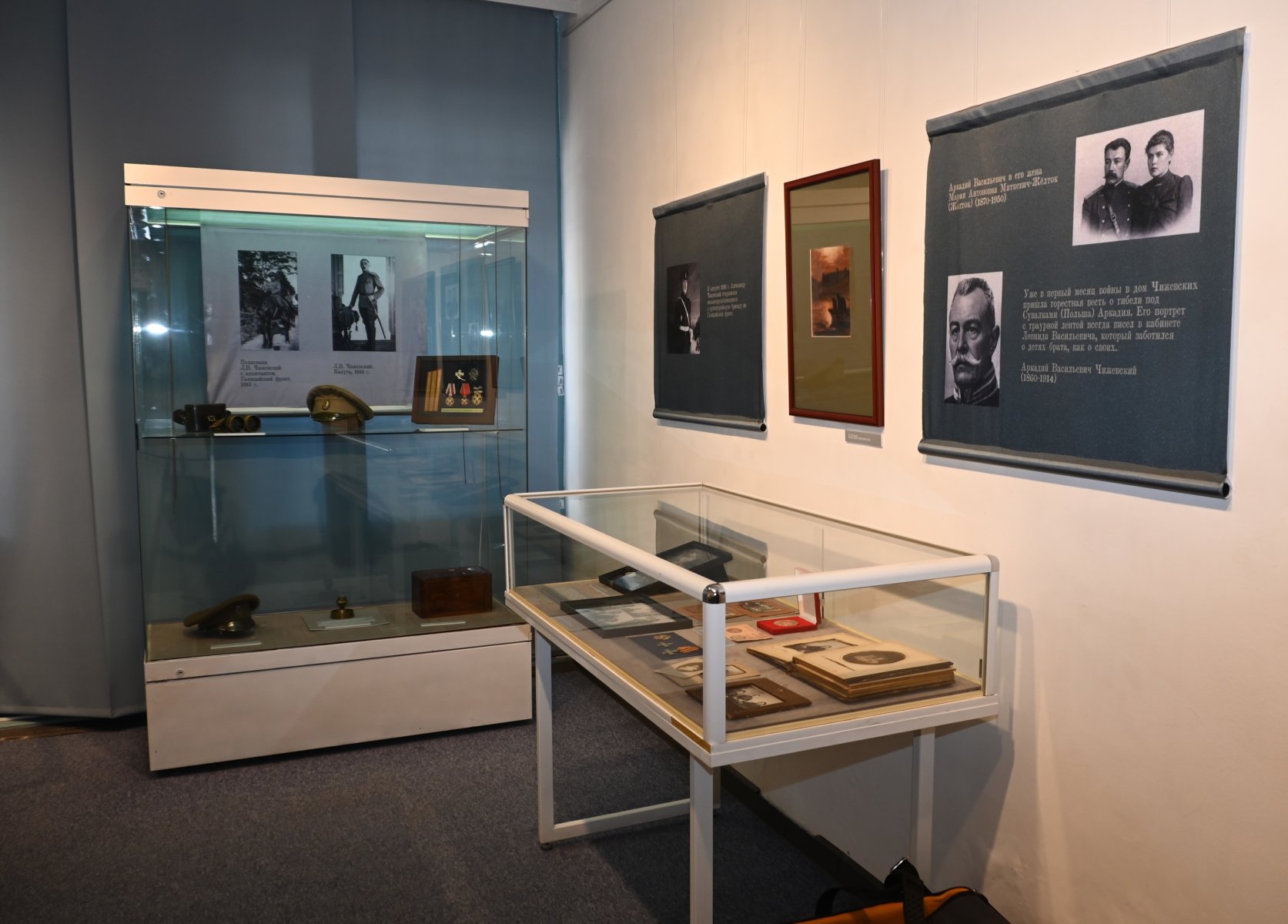 Выставка повествует о героической службе России представителей семьи Чижевских – Леонида Васильевича (1861-1928), его сына Александра (1897-1964), его старшего брата Аркадия Васильевича (1859-1914) и мужа племянницы Василия Васильевича Арефьева (1882-1948).