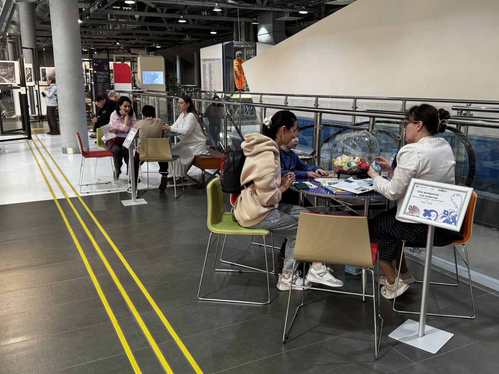 Для юных посетителей проводились различные интерактивные занятия и мастер-классы. В Образовательном центре читали звёздные сказки северных народов России, а дети тут же придумывали к ним продолжение. Взрослые и школьники проходили квесты «По музею с цитатами в руках» и «Первый космонавт планеты». Особой популярностью пользовался квест «Библиокосмик»: за выполнение заданий на станциях в экспозиции музея можно было получить игровую валюту — «космики», которая обменивалась на сувениры. Гости также могли ознакомиться с выставками, которые сейчас проходят в музее: «Космос русской иконы», «Легенда космического масштаба» и «Как мы будем жить на Марсе?».